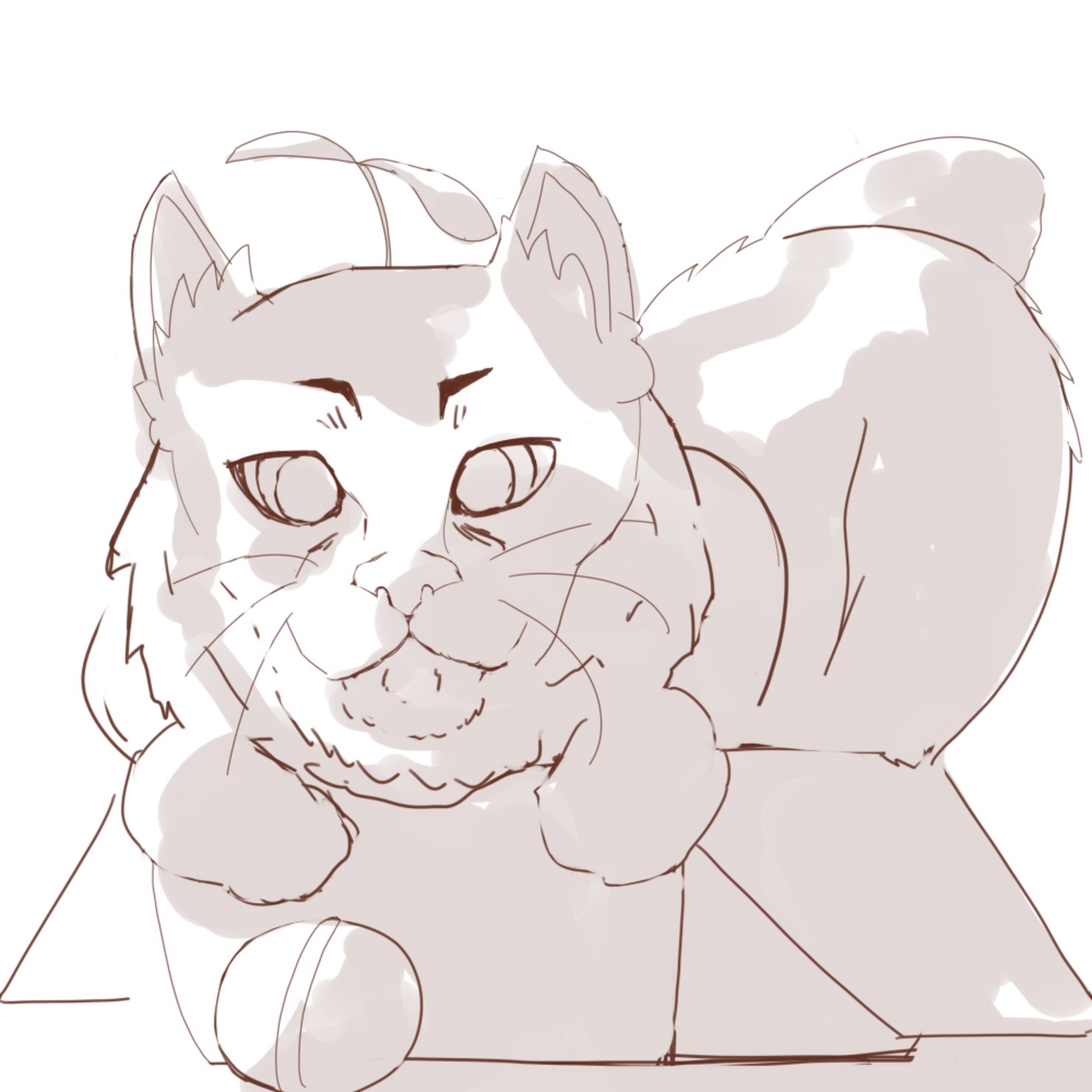 成長しきった猫は小さいころのように箱の中に隠れますが、箱が小さすぎて入りません。 次はおもちゃに興味を示します。 成長の芽は順調に育っているようです。