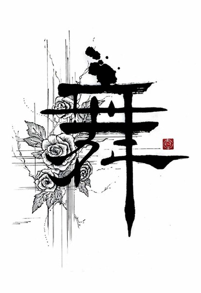 「舞」にバラの花をあしらい、エレガントな作品に仕上げました。